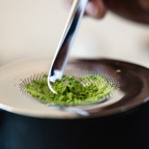 W skład zestawu wchodzą – ceramiczna miska, stojak na trzepaczkę i taca, bambusowa trzepaczka oraz stalowa łyżka i sitko — wszystko zaprojektowane tak, aby stworzyć rytuał, który można poczuć wszystkimi zmysłami.