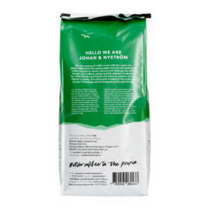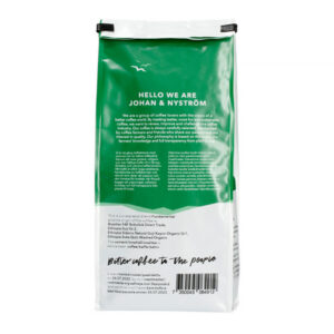 Kawa ziarnista jakości specialty pochodząca z Etiopii i Brazylii, wypalona w szwedzkiej palarni Johan & Nyström. Palona w jasnym stopniu, sprawdzi się do ekspresu przelewowego, dripa, Chemexa, AeroPressa, French Pressa i innych alternatywnych metod parzenia. W filiżance można wyczuć nuty mlecznej czekolady, jagód i słodkich owoców.