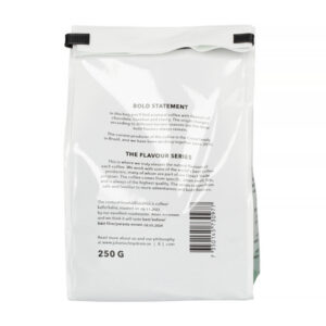 Kawa ziarnista jakości specialty pochodząca z Brazylii, wypalona w szwedzkiej palarni Johan & Nystrom. Palona w ciemnym stopniu, najlepiej smakuje przygotowana w ekspresie ciśnieniowym lub kawiarce. W jej smaku pojawiają się nuty przypominające czekoladę, karmel i słodkie śliwki.