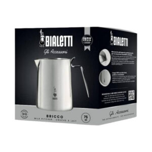 Dzbanek do mleka Bialetti to praktyczny i wytrzymały rondelek ze stali nierdzewnej, idealny do podgrzewania mleka zarówno na kuchence, jak i przy użyciu dyszy pary w ekspresie.
