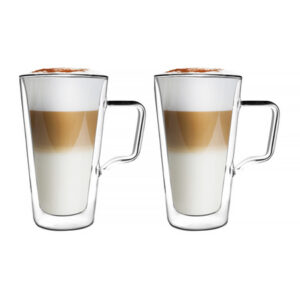 Zestaw dwóch szklanek Vialli Design do latte o pojemności 350ml i podwójnych ściankach. Eleganckie, funkcjonalne i pojemne szklanki z serii Diva do latte to nowość marki Vialli Design.