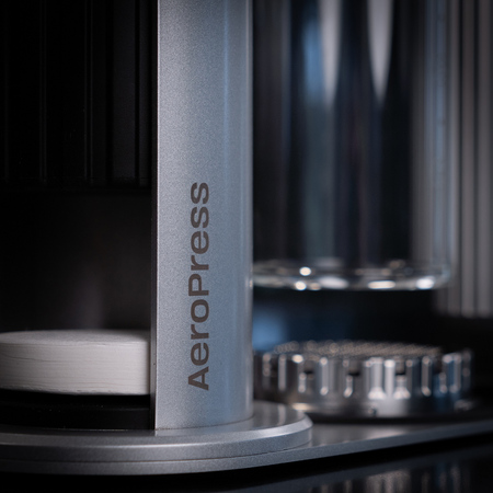 Organizer stworzony z myślą o przechowywaniu AeroPressa, mieszadła, sitka, miarki i papierowych filtrów. Jego forma jest idealnie dopasowana do każdego z elementów, jest elegancki, kompaktowy i ułatwia zachowanie porządku. Wykonany z solidnych materiałów – stali nierdzewnej i silikonu.