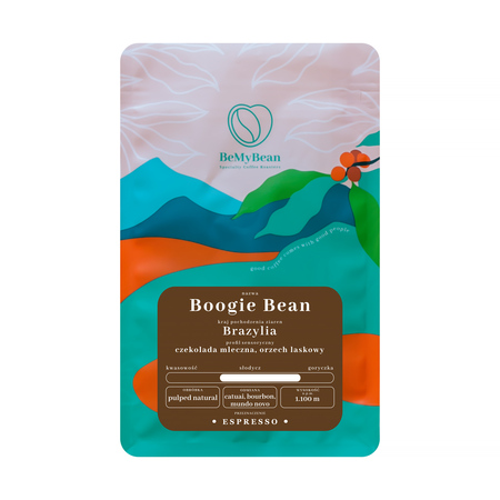 Nasz bestseller espresso o ogromnym spektrum poprawnego parzenia. W zależności od sposobu zaparzenia bardzo słodka ze średnią goryczką lub słodko-kwasowo-owocowa z delikatną goryczką. Kawa wiele wybaczająca i bardzo wdzięczna. Prosta w parzeniu i dająca dużą przyjemność z picia. Boogie Bean to klasyczna Brazylia o umiarkowanej kwasowości, delikatnej goryczce i słodyczy. Ziarna pochodzą z kooperatywy Cooxupé, której początki sięgają 1932r. Kooperatywa nie ogranicza się do produkcji kawy lecz także podejmuje aktywne działania z zakresu odpowiedzialności społecznej dbając o edukację, opiekę zdrowotną i szkolenia dla rolników. Szczególny nacisk kładzie na zrównoważone rolnictwo.
