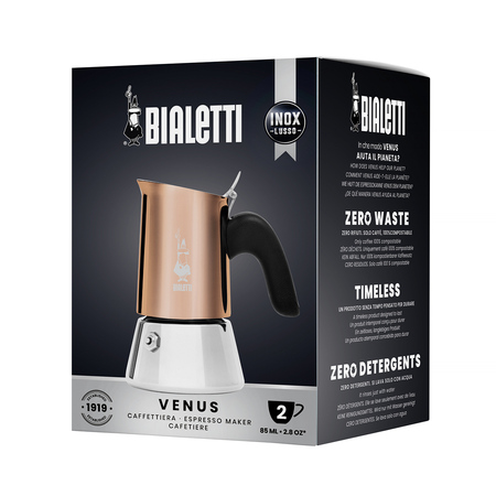 Kawiarka New Venus to nowa wersja jednego z najpopularniejszych modeli światowego lidera kawiarek, firmy Bialetti. Nową wersję charakteryzuje odświeżony wygląd – zmienił się kształt górnego zbiornika, przykrywki oraz uchwytu. Ścianki dolnego zbiornika są także o 20% grubsze niż w poprzedniej wersji.