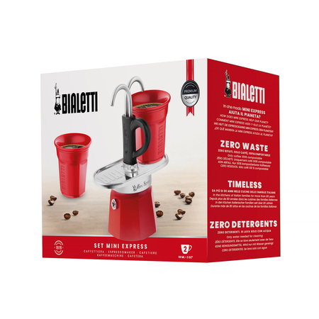 Bialetti Mini Express 2tz Czerwona + 2 filiżanki