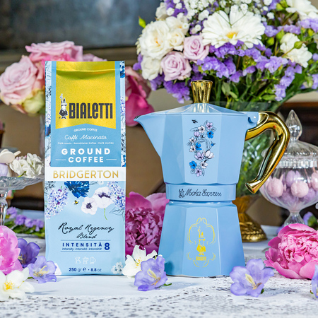 Bialetti, Netflix i Shondaland łączą siły, aby zaoferować ekskluzywną i wyrafinowaną kolekcję inspirowaną serialem Bridgertonowie. Moka Express Bridgerton to limitowana wersja najbardziej klasycznego modelu światowego lidera wśród producentów kawiarek, firmy Bialetti, ozdobiona motywami kwiatowymi i złotymi detalami, aby chwila z kawą była jeszcze bardziej romantyczna, intrygująca i zgodnia z angielskim bon tonen. To właśnie ta kawiarka w oryginalnej kolorystyce rozsławiła włoskiego producenta. Do dziś jest to najpopularniejszy model moki na świecie, o czym świadczy już ponad 200 milionów wyprodukowanych egzemplarzy.