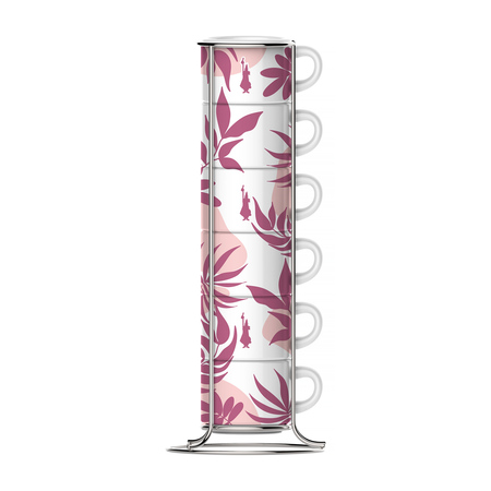 Bialetti – Primavera – Zestaw 6 filiżanek do espresso na stojaku – Różowy