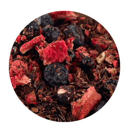 Składniki: liście czerwonokrzewu – rooibos (58%), truskawka liofilizowana (20%), borówka amerykańska liofilizowana (9%), organiczny naturalny aromat mieszanych owoców leśnych (z borówki, jeżyny, czerwonej porzeczki, maliny, czereśni), owoc czarnego bzu liofilizowany (2%), malina liofilizowana (2%), ekstrakt z wanilii.