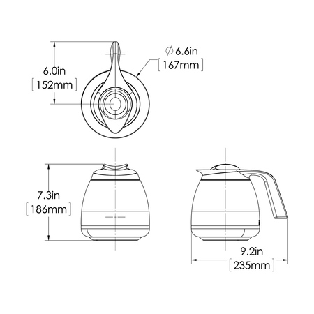 Dzbanek o pojemność 1,9 l – mieści około 12 filiżanek kawy lub innych gorących napojów. Otwór pokrywki jest zamykany zakrętką.
