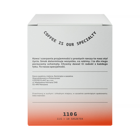 W pudełku znajdziesz 10 saszetek, każda zawiera 11 g kawy.