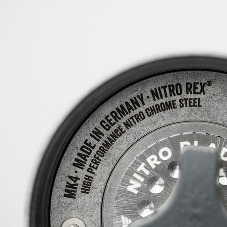 Nitro Rex® to więcej niż stal nierdzewna — to arcydzieło inżynierii materiałowej i rzemiosła. Zawiera ponad 17% chromu oraz precyzyjnie dobrane ilości wanadu, molibdenu i innych cennych mikrostopów, dzięki czemu oferuje wyjątkową odporność na korozję, twardość i odporność na zużycie. Jej złożony proces przetapiania zapewnia drobną, jednorodną strukturę oraz srebrzystobiałą powierzchnię, która nie tylko zachwyca estetyką, ale także eliminuje potrzebę dodatkowych powłok. Nitro Rex® pozostaje taka, jaka została stworzona: wytrzymała, trwała i absolutnie neutralna smakowo — dla kawy, która zachowuje pełnię swojego charakteru.