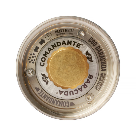 Marka kocha także naturalne drewno. Uchwyt z litego dębu wyprodukowany przez przyjaciół z niemieckiego Schwarzwaldu jest zarówno ergonomiczny, jak i piękny dla oka dzięki unikalnej strukturze słojów dębu. C60 Baracuda jest wyposażony w rączkę w rozmiarze XL z gałką Big Joe, które sprawiają, że mielenie jest jeszcze bardziej płynne. Pokrętło regulacji stopnia mielenia wykonano z mosiądzu. Produkty Comandante nie zawierają aluminium.
