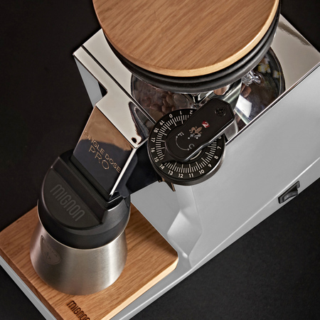 Eureka Mignon Single Dose PRO to młynek automatyczny do użytku domowego z serii Oro. Mignon Single Dose to młynek na pojedynczą dozę kawy – dla ceniących świeżą kawę i zmianę ziarna przy każdym mieleniu. Zadowoli wymagających domowych baristów szukających młynka zarówno pod espresso, jak i pod przelewowe metody parzenia. Single Dose to dokładne mielenie przy niskiej retencji i wysokiej wydajności, nowoczesne rozwiązania i piękne, włoskie wzornictwo. W młynku zastosowano nowe, duże pokrętło ze wskaźnikiem liczby pełnych obrotów oraz żarno bez otworów na śruby.