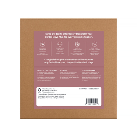 Fellow – Carter Move Mug 3 w 1 – Kubek termiczny + 3 nakrętki – Pudrowy różowy 473 ml