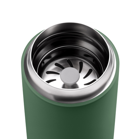 Kubek ten został zaprojektowany, w taki sposób byś mógł cieszyć się pełnym aromatem swojego napoju. Otwór jest szeroki a grubość jego krawędzi została dostosowana by użytkowanie było prostsze i bardziej przypominało doświadczenie picia z klasycznego kubka. Wewnątrz posiada specjalną ceramiczną powłokę, która nie wpływa na smak napoju.