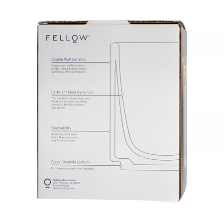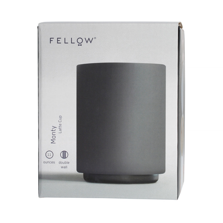 Fellow Monty Latte to kubek o pojemności 325 ml, przeznaczony do caffe latte. Monty charakteryzuje się pięknym wzornictwem, podwójnymi ściankami pozwalającymi na bezpieczne trzymanie go w dłoni nawet z gorącą zawartością oraz zaokrąglonym dnem, które pozwala na wygodniejsze malowanie latte artów.