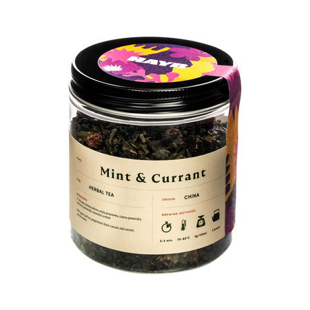Herbata Mięta/Porzeczka to mocno miętowa mieszanka zielonej herbaty, mięty pieprzowej i porzeczek. W sam raz na lato, także jako herbaciane cold brew – ale i na zimę, jako przyjemne wspomnienie ciepłych wieczorów!