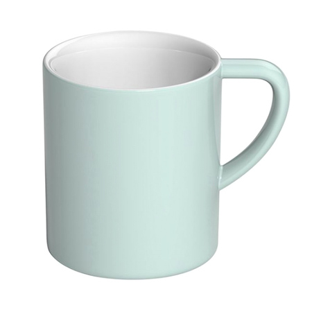 Kubek łączy w sobie nowoczesny design z tradycyjnym charakterem. Grube ścianki i przestrzeń na powietrze pod dnem zapewniają utrzymywanie odpowiedniej temperatury kawy przez długi czas. Zaokrąglony kształt dna pozwala na optymalne wydobycie smaku. Naczynia wykonane są z najwyższej klasy porcelany wypalanej w temperaturze 1300℃.