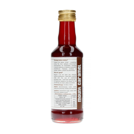 Składniki: karmelizowany cukier, woda, świeży sok cytrynowy, świeży sok malinowy.