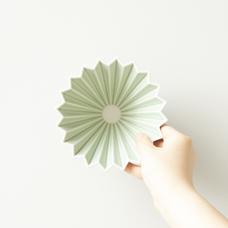 Drippery ORIGAMI zostały zaprojektowane i wykonane w Japonii z wysokiej jakości porcelany. Ich nazwa nawiązuje do formy drippera, który przypomina złożone origami. Kształt stożka, dwadzieścia równo rozmieszczonych żłobień i dolny otwór o średnicy 2,5cm zapewniają dobry przepływ wody oraz odpowiednią ekstrakcję kawy. Ze względu na proces produkcji porcelany, na niektórych naczyniach mogą występować pewne nierówności czy niewielkie różnice w tonie koloru – nie jest to wadą i nie wpływa w żaden sposób na użytkowanie naczynia.