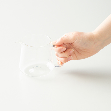 Ze względu na pojemność, sprawdzi się szczególnie z dripperem w rozmiarze S (1-2 filiżanki). Odpowiedni pod względem średnicy również do AeroPressa (zaleca się jednak ostrożność przy wyciskaniu AeroPressa na szklanych naczyniach).