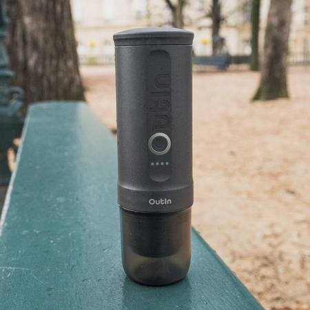 Outin Nano to przenośny ekspres na kapsułki i mieloną kawę do przygotowywania espresso. Urządzenie jest kompaktowe i przenośne dzięki wbudowanemu akumulatorowi – zostało stworzone z myślą o użyciu w dowolnym miejscu – na spacerze, w samochodzie, czy w podróży.
