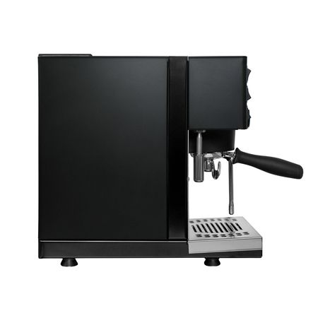 Dwubojlerowy ekspres do espresso bez kompromisów. Stalowa obudowa, ergonomiczny portafiltr, izolowane bojlery, wielokierunkowa dysza parowa ze stali nierdzewnej, pokrętło pary, mosiężna jednostka zaparzająca, regulowana na wysokość tacka na filiżanki. Komercyjne komponenty Rancilio i technologia parzenia zamknięte w zaledwie 25 cm.