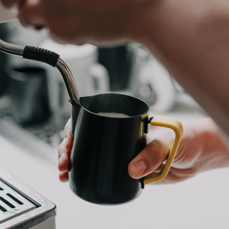 Silikonowa osłonka na rączkę dzbanków Rhino Coffee Gear o pojemności 600ml. Zapewnia dobry chwyt, dodatkową ochronę w razie nagrzania dzbanka, a także pozwala odróżnić ozaczony dzbanek z konkretnym rodzajem mleka od innych.