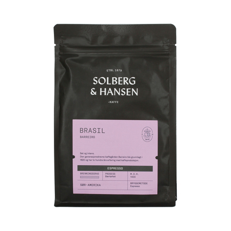 Kawa ziarnista jakości specialty pochodząca z Brazylii, wypalana w norweskiej palarni Solberg & Hansen. Palona w ciemnym stopniu, przeznaczona do espresso – doskonale sprawdzi się w ekspresach ciśnieniowych i kawiarkach. W smaku można wyczuć ciemną czekoladę i orzechy laskowe.