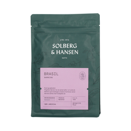 Kawa ziarnista jakości specialty z Brazylii, wypalana w norweskiej palarni Solberg & Hansen. Palona jasno, idealna do ekspresu przelewowego, dripa, Chemexa, AeroPressa, French Pressa, oraz innych alternatywnych metod parzenia. Wyczuwalna czysta słodycz – pojawiają się nuty orzechów, czekolady i rodzynek.