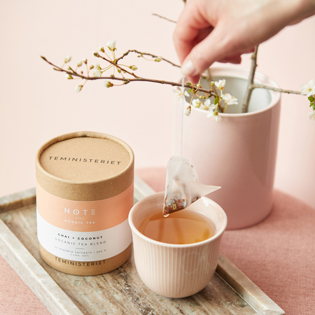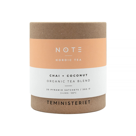 Teministeriet NOTE Chai Coconut Organic to ekologiczna czarna herbata aromatyzowana. Unikalne połączenie smaków idealne na każdą okazję – ciesz się wyrazistym, naturalnym smakiem tej wyjątkowej mieszanki.