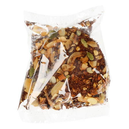 czerwonokrzew (rooibos) (45%), imbir (10%), kawałki cynamonu (10%), kawałki jabłka, chipsy kokosowe (8%), aromat, kardamon, czarny pieprz, kawałki migdałów.