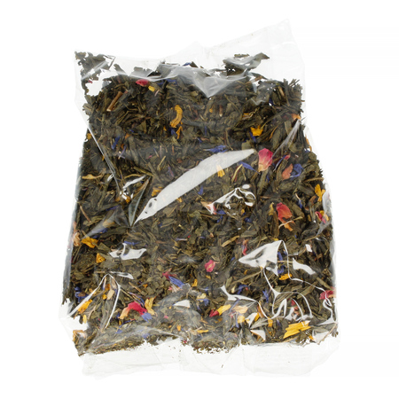 zielona herbata Sencha, kwiat róży, płatki bławatka, płatki słonecznika, aromat
