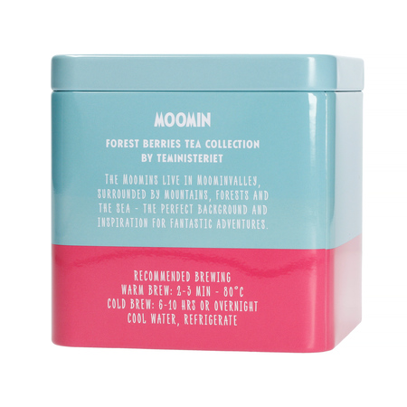Moomin to seria sypanych herbat z różnego rodzaju jagodami, stworzona przez szwedzką markę Teministeriet. Mnóstwo naturalnych składników, ogrom smaku i moc aromatu – każdy łyk to mała przygoda w krainie Muminków!