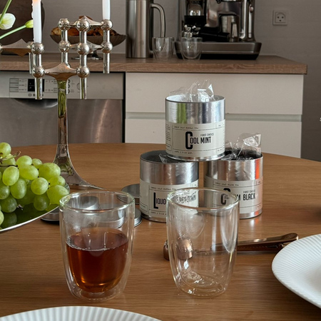 Liquorice Peppermint jest znana duńskim miłośnikom herbaty jako „Frisørens urtete” – czyli „ziołowa herbata fryzjera” – i cieszy się dużą popularnością oraz uznaniem. To bardzo świeża, miętowa herbata, naturalnie słodzona korzeniem lukrecji. Nigdy nie staje się gorzka.
