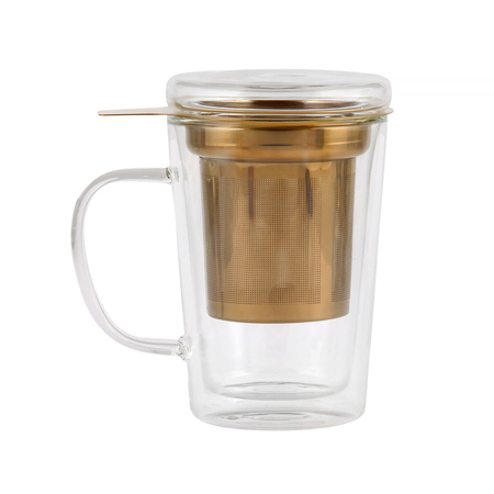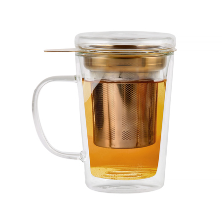 Vialli Design szklanka AMO ze stalowym złotym zaparzaczem 300ml