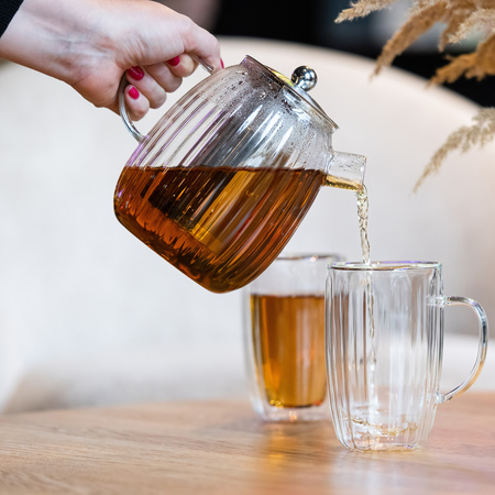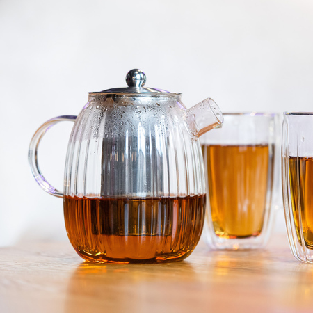 Dzbanek wykonany jest ręcznie z wysokiej jakości szkła borokrzemowego bezpiecznego dla zdrowia i niewchodzącego w kontakt z zawartością oraz niewpływającego na jej smak.